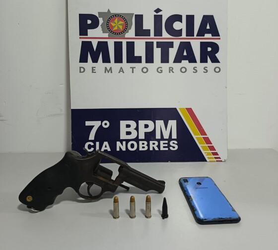 Um adolescente, de 17 anos, foi apreendido e um homem, de 25 anos, foi preso suspeitos por formação de quadrilha e porte ilegal de arma de fogo nas proximidades de bar na Avenida Marechal Rondon, região central do município de Nobres (122 km de Cuiabá). Com a dupla, policiais militares do 7º Batalhão recolheram um revólver calibre 38, três munições e um aparelho celular.