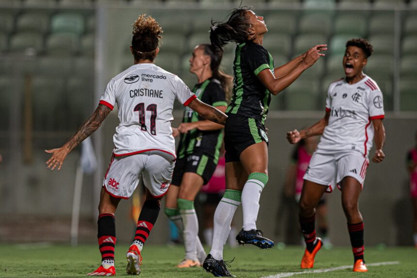 Em jogo da nona rodada do Brasileirão Feminino, o Flamengo foi até Belo Horizonte e venceu o América-MG, por 2 a 1, na noite desta segunda-feira (6), na Arena Independência. Com dois gols de Cristiane, as Meninas da Gávea conquistaram a terceira vitória consecutiva e já estão na sexta colocação no campeonato com 14 pontos.