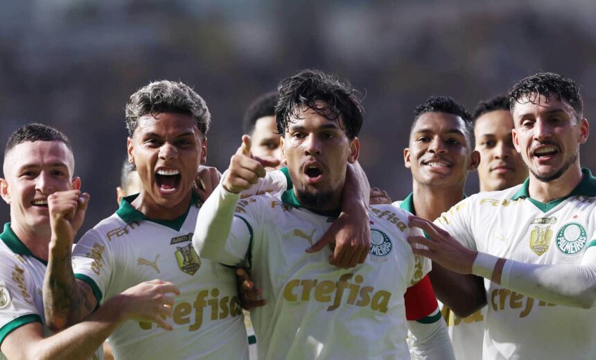 O Palmeiras respondeu aos nove minutos. Rony recebeu cruzamento preciso de Piquerez e, na pequena área, cabeceou para ótima defesa de Gustavo. Na sequência, quase saiu o primeiro gol. Luis Guilherme trocou passe com Marcos Rocha e cruzou para Lázaro, que carimbou a trave.