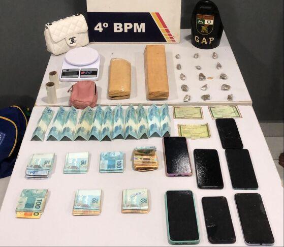 Policiais militares do 4º Batalhão prenderam duas mulheres e um homem por associação para tráfico de drogas, nesta segunda-feira (08.04), em Várzea Grande. A quadrilha foi presa em flagrante em uma mercearia, onde a PM apreendeu dois tabletes e 15 porções de substância análoga à maconha e R$ 8,1 mil em dinheiro.